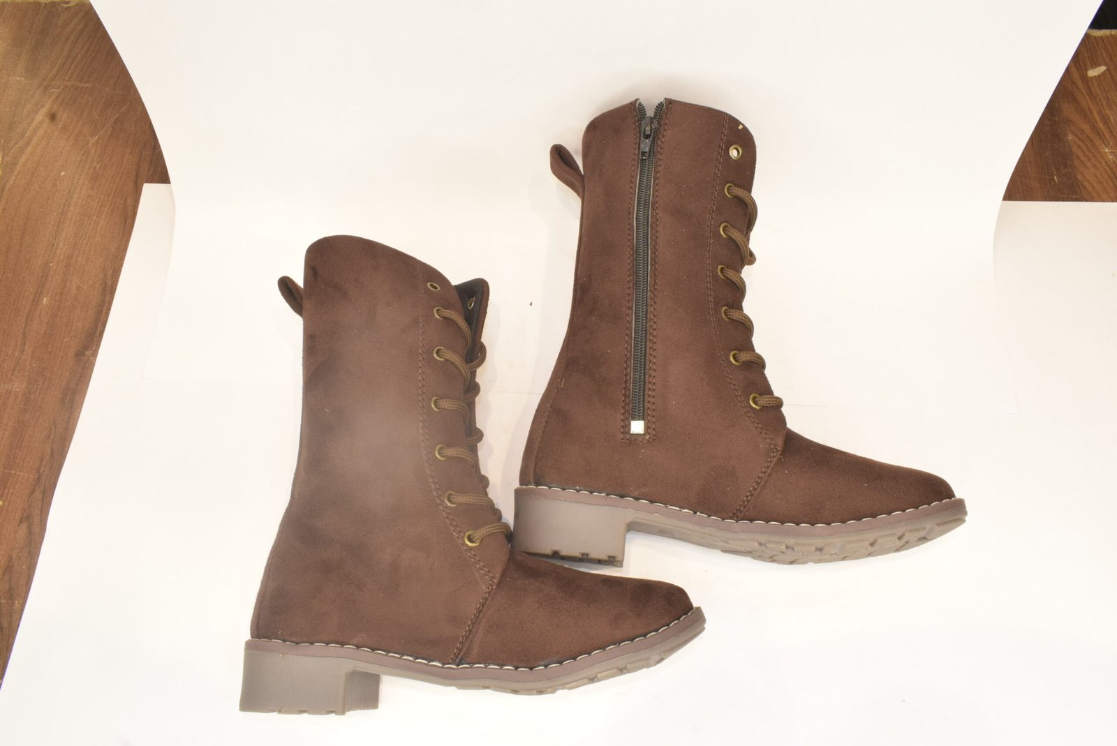 Take a step towards effortless style with our premium mid-calf combat boots. Meticulously designed for the modern woman who values both fashion and utility, these boots are an essential staple for your transitional wardrobe. The rich brown faux suede upper provides a sophisticated tactile finish, making them a perfect companion for everything from street fashion to refined casual looks.